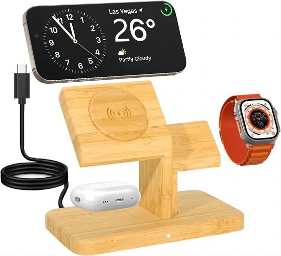 RX-2202 WELUV Ideal Home bamboo 15w 3in1magsafe wireless charger stand