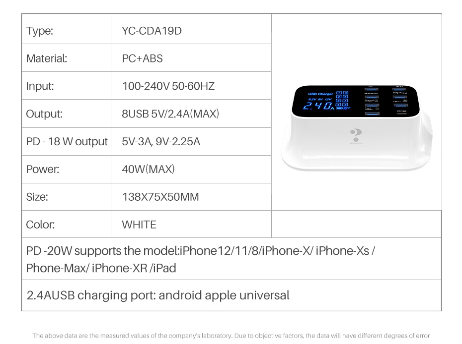 (CDA19PD) 8 port adapter (7 USB ports + PD20W fast charge)